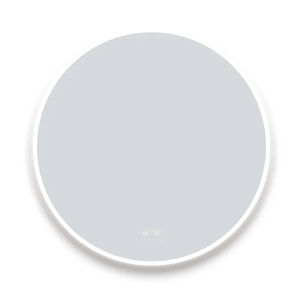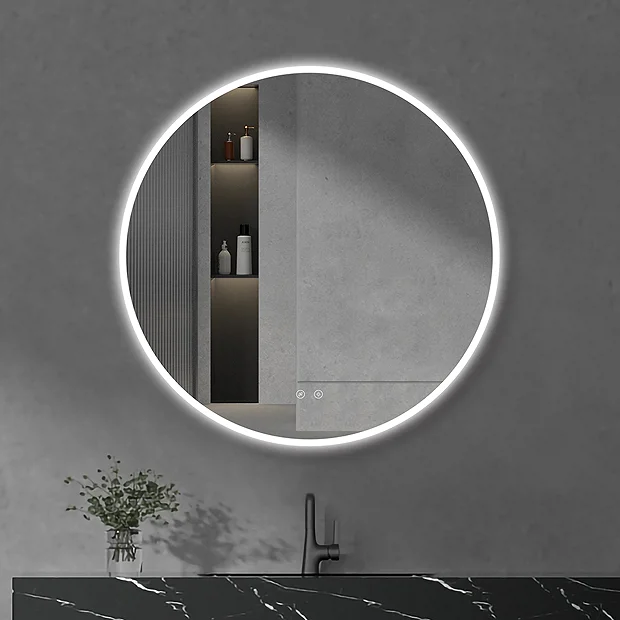 The contemporary Arezzo large 800mm round LED framed bathroom mirror, features a smart touch button on the screen surface for LED lighting and a de-mist pad which is designed to prevent the mirror from fogging.ย