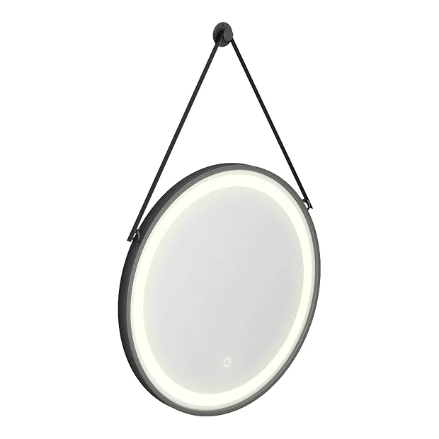 The contemporary Arezzo large round matt black bathroom mirror features a smart touch button on the screen surface for LED lighting and a de-mist pad which is designed to prevent the mirror from fogging.ย
