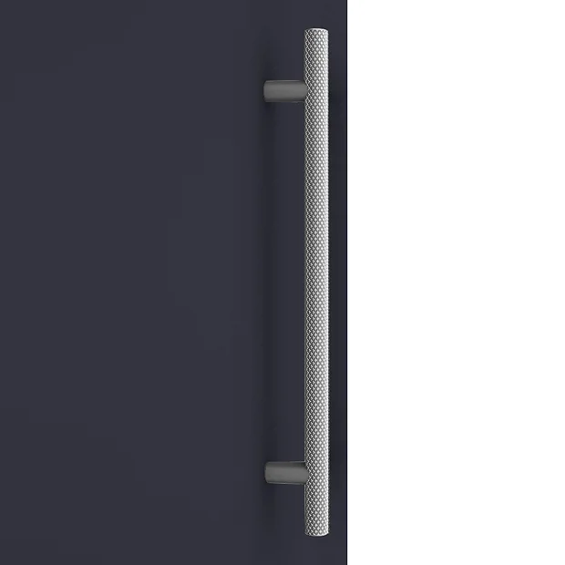 The Arezzo matt blue Industrial style bathroom furniture range combines up to date looks with practical storage. Features a soft close door and provides plenty of space for toiletries, the Arezzo wall hung tall storage cabinet is perfect for adding modern style to any bathroom. Supplied with a on-trend round satin chrome knurled detail handle, great for creating an eye catching industrial look in your bathroom. Wall fixings included.
