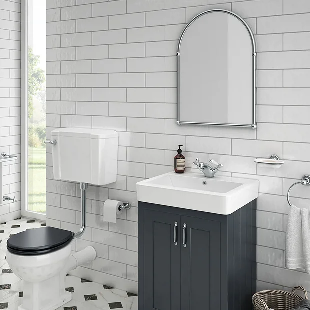 With its eye catching polished chrome frame, the Chatsworth Traditional Arched Mirror will make a charming centrepiece in your bathroom. As well as providing timeless styling, this 490mm wide traditional bathroom mirror will help reflect light around the room โ a handy trick to give the impression of more space in smaller bathrooms and en suites. Complement this Chatsworth arched bathroom mirror with matching chrome items from the Traditional 4 Piece Bathroom Accessory Pack. Why not hang it above a Chatsworth Traditional Graphite Vanity Unit for a vintage effect?