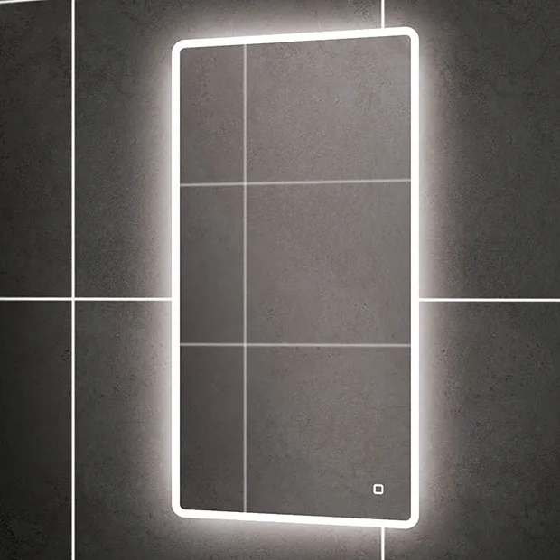- Light adjusting touch switch, press the button to turn on & off or hold to select colour temperature. The mirror will keep this selection every time you turn it on & off.