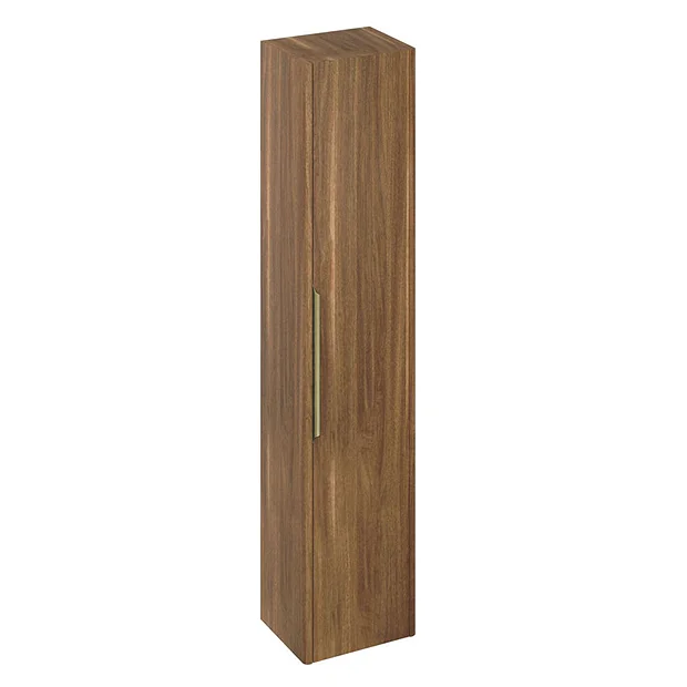 The Shoreditch furniture collection from Britton Bathrooms offer a range of storage solutions to suit every personal preference and bathroom size, especially designed for its environment. This Wall-Hung Tall Cabinet in Caramel provides practical storage for toiletries and helps keep your bathroom clutter-free. The unit is manufactured in high quality 16mm medium density fibre board and comes supplied with a brushed brass handle.ย