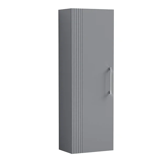 Roxbury Deco Fluted Satin Grey Wall Hung Tall Storage Cabinet with Chrome Handle