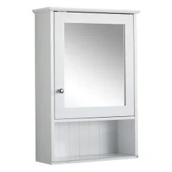 Victorian Plumbing White Wood Wall Cabinet With 3 Compartments And Mirrored Door