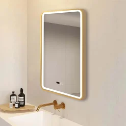 Arezzo Brushed Brass 500 X 700mm Rectangular LED Illuminated Anti-Fog Bathroom Mirror