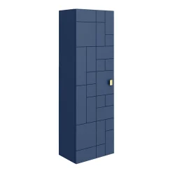Venice Abstract Wall Hung Tall Storage Cabinet – Blue – With Brushed Brass Square Drop Handle