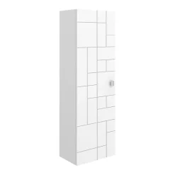 Venice Abstract Wall Hung Tall Storage Cabinet – White – With Chrome Square Drop Handle