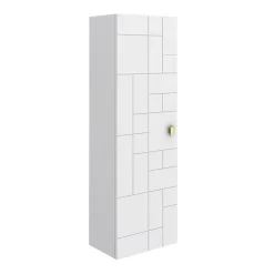Venice Abstract White Wall Hung Tall Storage Cabinet With Brushed Brass Square Drop Handle
