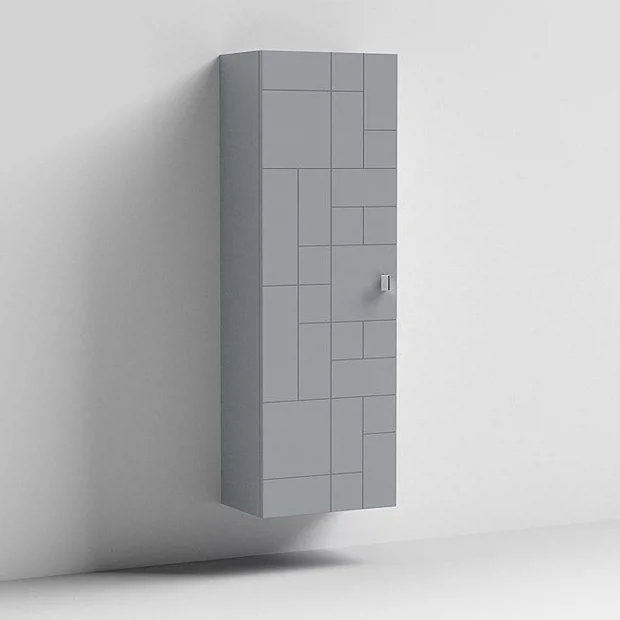 Venice Abstract Grey Wall Hung Tall Storage Cabinet with Chrome Square Drop Handle