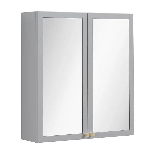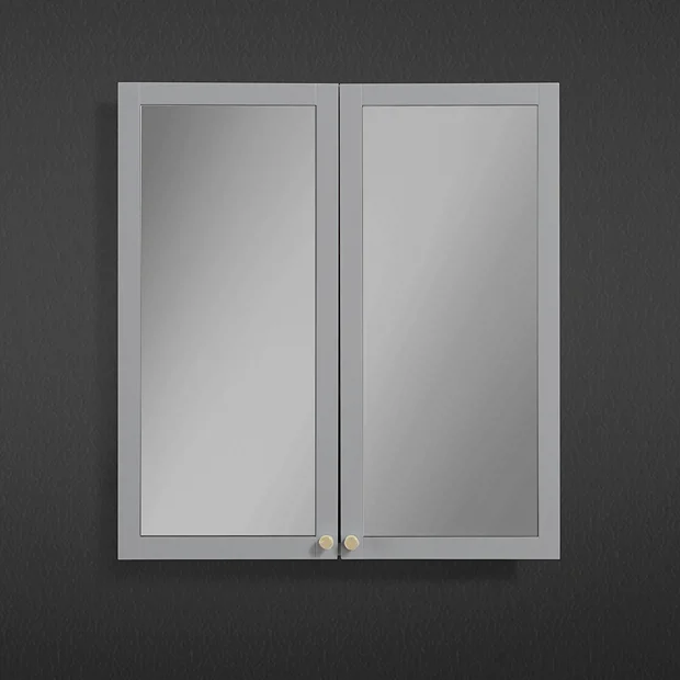 Montrose 600mm Wall Mounted 2-Door Mirrored Cabinet in Dove Grey with Brushed Brass Knobs