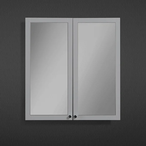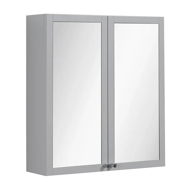 Montrose 600mm Wall Mounted 2-Door Mirrored Cabinet in Dove Grey with Chrome Knobs