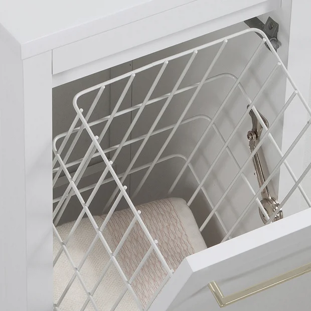 The unit is designed with an interior wire basket that allows you to store and organize towels, laundry, and other items. With its sleek design and durable construction, the Montrose White Laundry Basket Unit with Brushed Brass Handle is sure to make a fantastic addition to any home.